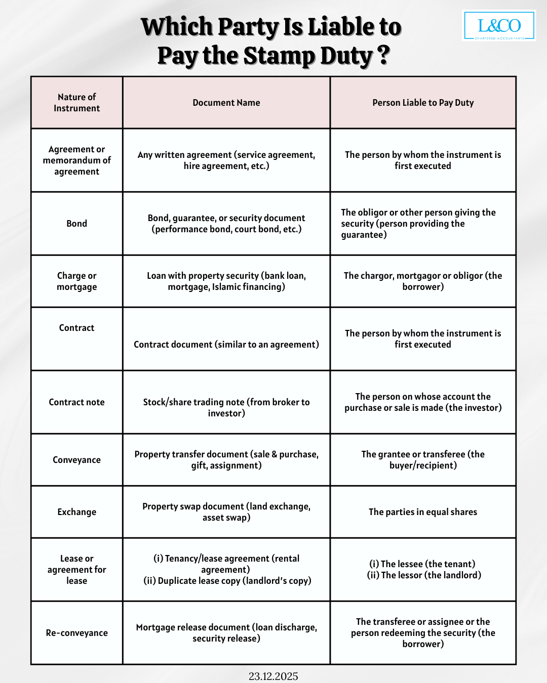 In Malaysia, stamp duty is a tax imposed on specific legal instruments. Under the Third Schedule of the Stamp Act, the responsibility to pay stamp [...]