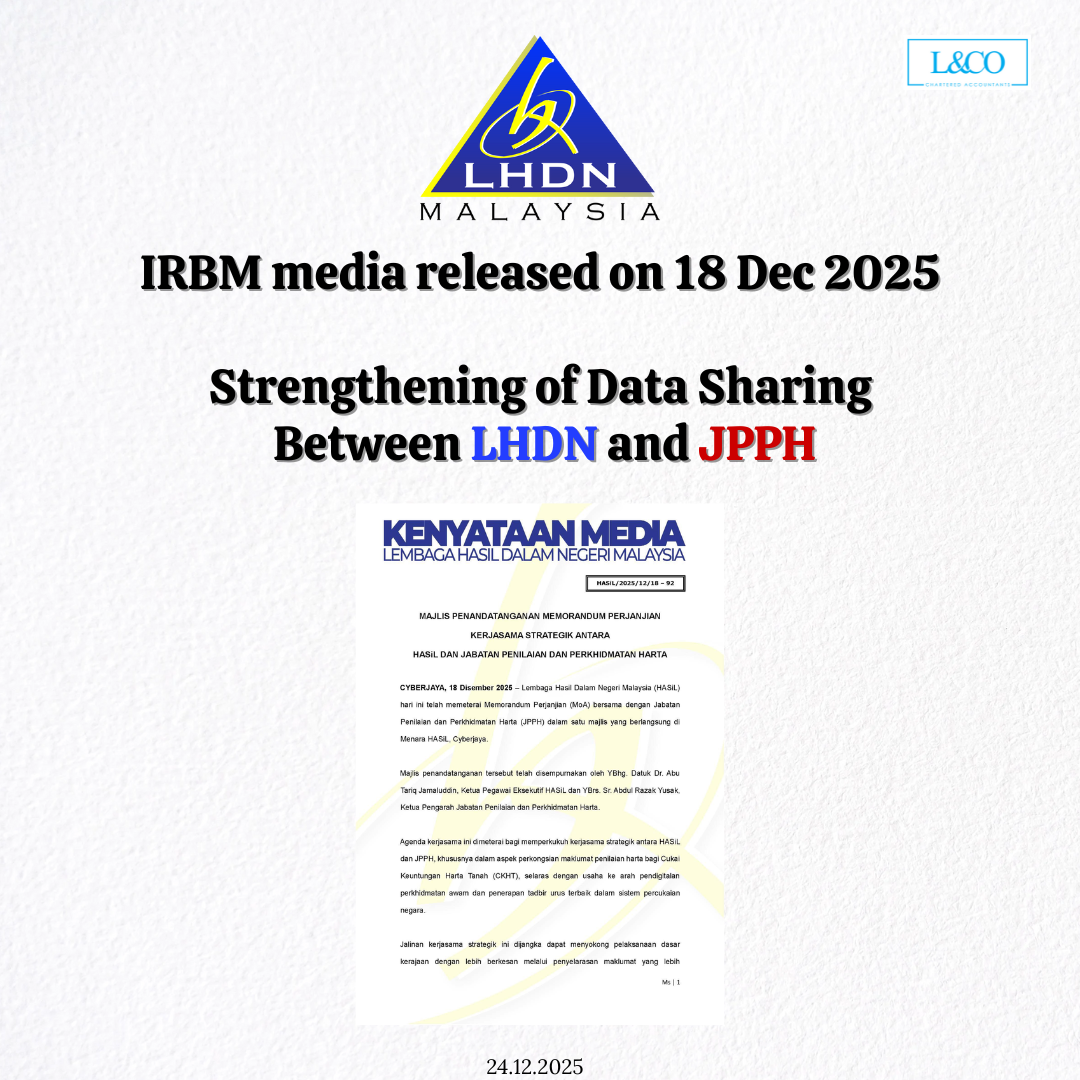 On 18 December 2025, the Inland Revenue Board of Malaysia (LHDN) and the Valuation and Property Services Department (JPPH) signed a Strategic Cooperation Memorandum of [...]