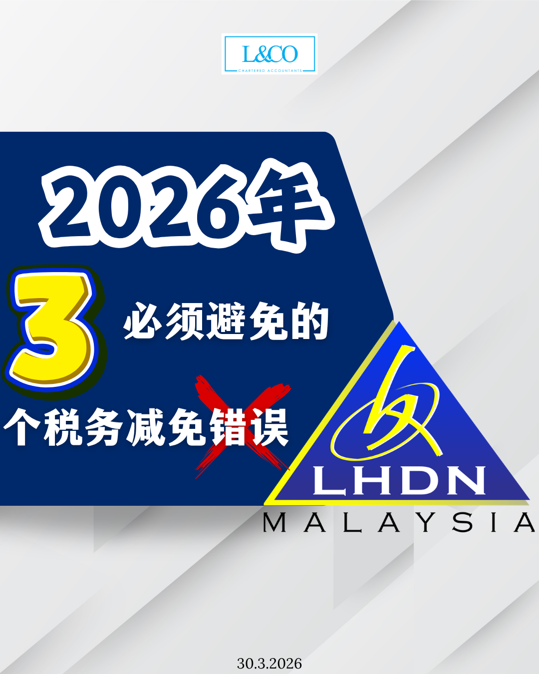 在马来西亚的累进税制下,税务减免不仅仅是“有没有申报”,更关键在于“有没有用对”。 若缺乏规划,即使符合条件,也可能错失可观的节税机会。 以下整理 2026 年最常见的 3 个错误,以及对应的优化建议。 错误一:错过最新税务减免更新 2026 报税(YA2025)迎来多项税务减免调整。若未及时了解,可能直接影响整体节税效果。 重点更新如下: 个人与家庭相关 残障配偶:从 RM5,000 提高至 RM6,000 残障个人:从 RM6,000 提高至 RM7,000 残障子女:从 RM6,000 提高至 RM8,000 保险与医疗 [...]