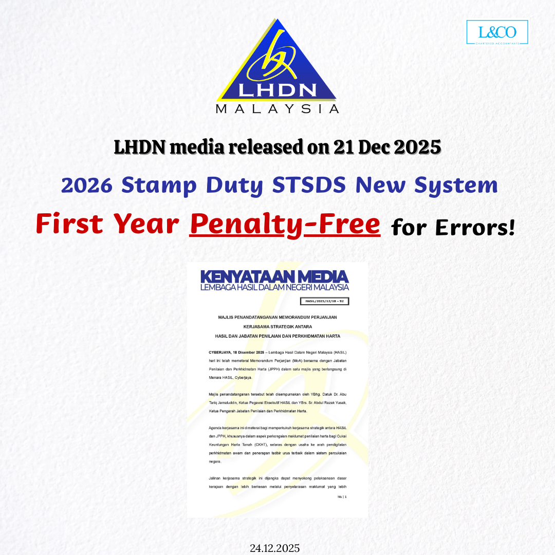 Starting 1 January 2026, the Stamp Duty Self-Assessment System (STSDS) will be officially implemented. The good news is - 2026 is a “transition and learning [...]