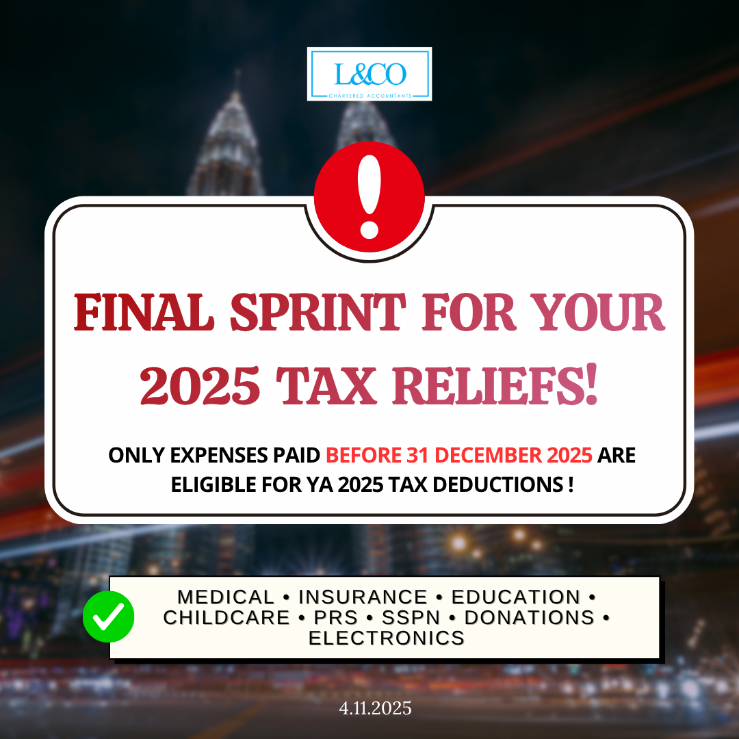 2025 is coming to an end! It’s the best time to review and maximize your personal tax reliefs before the year closes! Final Sprint for [...]