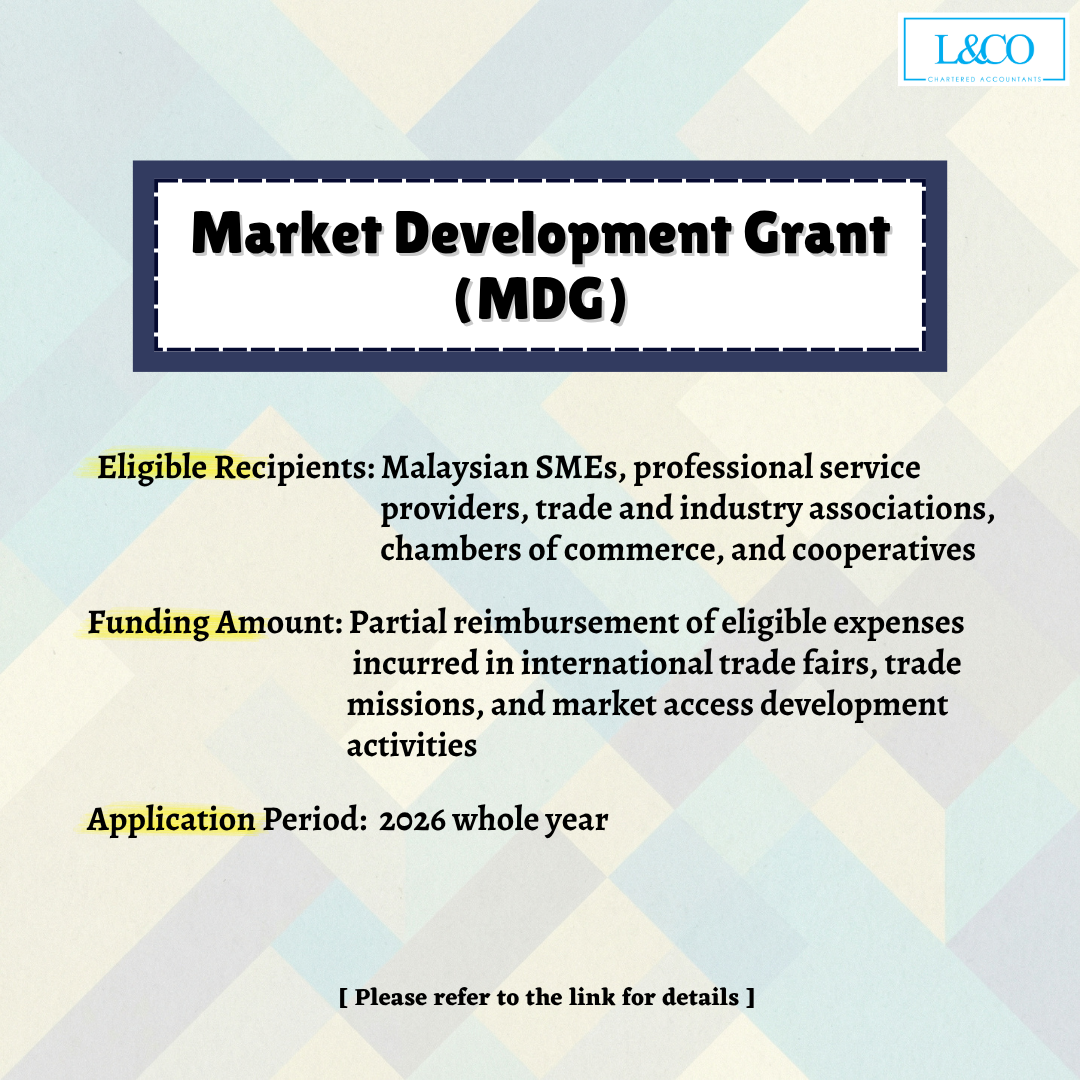 Introduced by the Malaysia External Trade Development Corporation (MATRADE), this grant provides partial reimbursement to SMEs for expenses incurred in participating in international trade fairs, trade missions, and market expansion activities, with the aim of encouraging Malaysian businesses to explore and grow their export markets. All applications have been migrated to the MADANI Digital Trade (MDT) platform.