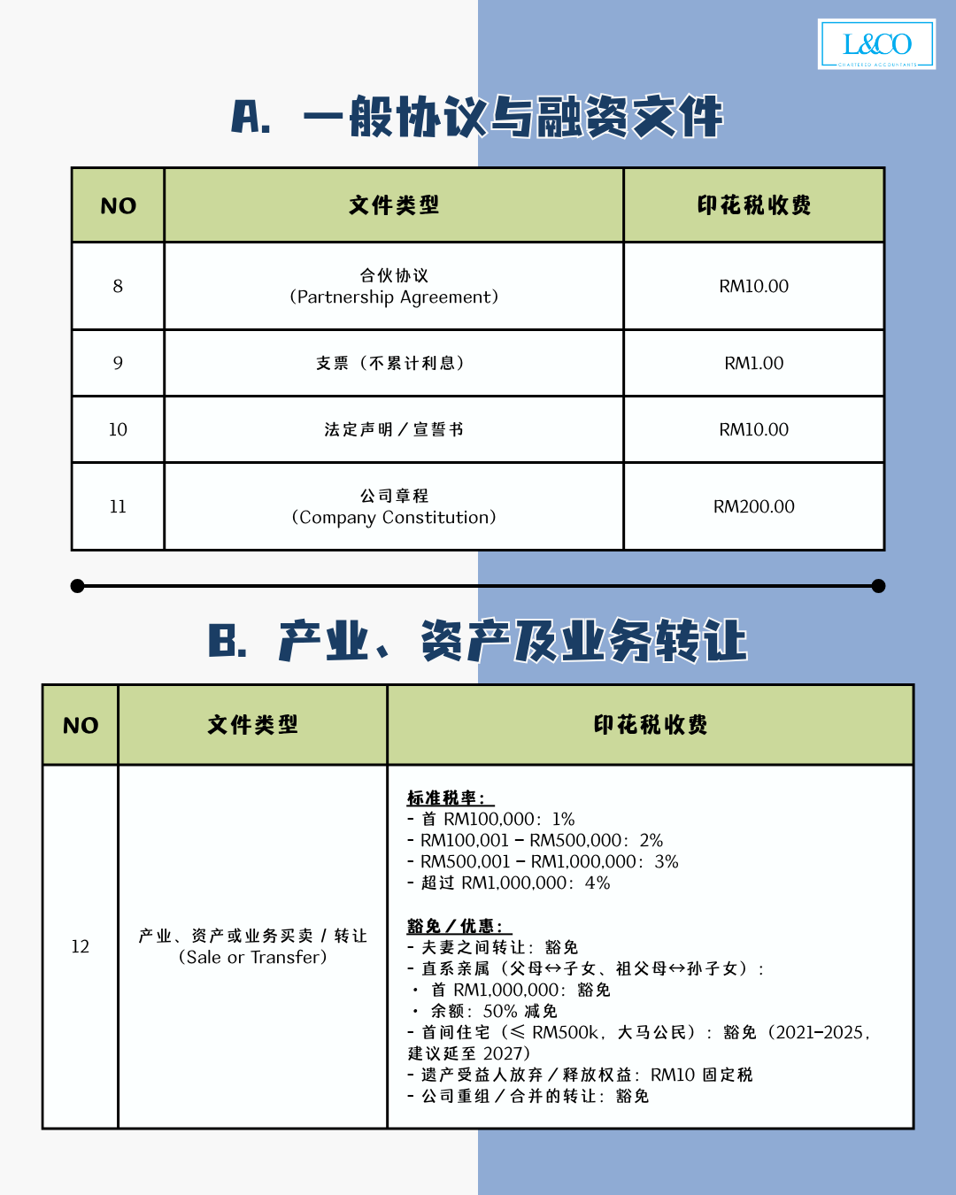 | 7 | 租赁 / 租约(Tenancy / Lease) | – 租期 ≤ 1 年:RM1