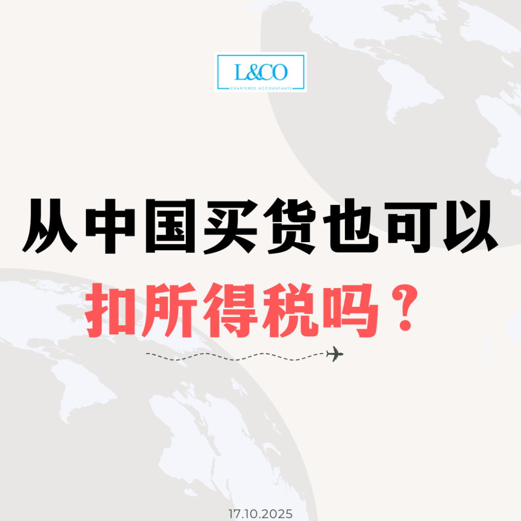 许多企业主从中国采购货物,却不确定这些进口成本是否能在报税时扣除。 事实上,只要具备完整的进口凭证与相关文件,这些费用是可以作为公司开销进行税务扣除的。 申请扣税所需的主要文件: 中国厂商发票(China Supplier Invoice) 作为采购交易的正式凭证,须显示卖方资料、货品明细与金额。 付款证明(Payment Proof) 证明公司确实已完成付款,可包括银行转账单、汇款记录或收据。 K1 表格(K1 Form) 由马来西亚海关签发,用于证明货物已合法进口。 为什么这些文件很重要? 上述文件不仅能证明交易真实性,也能让公司在报税时获得税务局(LHDN)认可。 若文件不完整,相关支出可能无法被视为可扣税费用,导致公司失去合法节税的机会。 专业建议: 在每一次海外采购或进口交易完成后,务必: 主动向供应商索取正式发票与付款凭证; 保留所有与进口相关的单据、表格及官方文件; 若有疑问,可向会计师或税务顾问确认文件是否齐全。 只要资料完整,就能安心申报、合法扣税,为公司节省更多成本。 **资料更新至17.10.2025