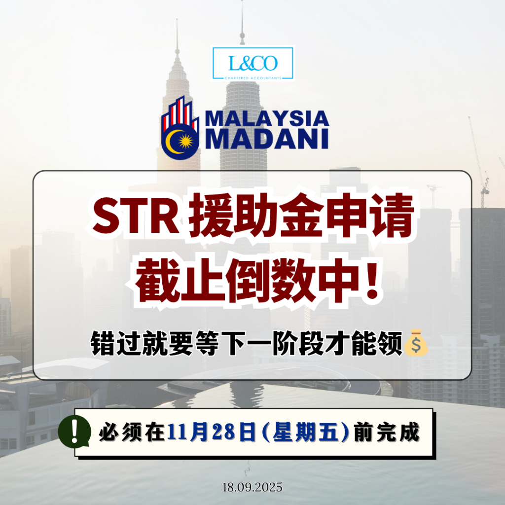 【STR 援助金申请截止 倒数】错过就要等下一轮啦! LHDN 最新通知 还没申请或更新 STR 援助金 (Sumbangan Tunai Rahmah) 的朋友,记得一定要在 2025年11月28日 (星期五) 前 完成申请或更新资料! 重点来了: 开放时间:12/10/2025 – 28/11/2025 错过截止日 = 只能从第二阶段才开始领援助金 第一阶段发放时间:预计 2026年1月底 [...]