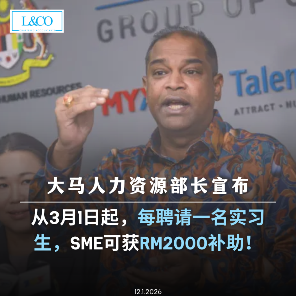 为协助企业培育本地人才,并提升实习与就业的衔接效率, 马来西亚政府透过 TalentCorp 推出 LiKES(Internship Placement Matching Grant for SMEs)计划,向符合条件的中小企业提供实习生聘用补助。 自 2026 年 3 月 1 日起,合格企业每聘请一名本地实习生,可获得最高 RM2,000 的政府补助。 1. 计划核心内容 补助金额:每名实习生 RM2,000(预付款形式) 计划总拨款:RM30,000,000 预计受惠人数:约 [...]
