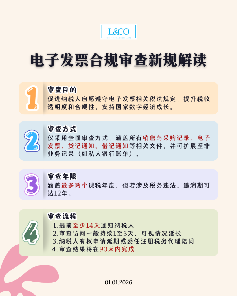 2025年12月15日起,内陆税收局(LHDNM)正式推出《电子发票合规审查框架》! 这不是演习,这是税局对电子发票合规监管的全面升级!所有企业主、财务负责人、税务代理请注意:是时候更新你的合规知识库了! 1. 审查目的 促进纳税人自愿遵守电子发票相关税法规定,提升税收透明度和合规性,支持国家数字经济成长。 2. 审查方式 仅采用全面审查方式,涵盖所有销售与采购记录、电子发票、贷记通知、借记通知等相关文件,并可扩展至非业务记录(如私人银行账单)。 3. 审查年限 涵盖最多两个课税年度,但若涉及税务违法,追溯期可达12年。 4. 审查流程 提前至少14天通知纳税人 审查访问一般持续1至3天,可视情况延长 纳税人有权申请延期或委任注册税务代理陪同 审查结果将在90天内完成 5. 自愿申报机制 纳税人在审查开始前可主动提交自愿申报,补报遗漏的电子发票,可能减轻处罚。 6. 责任与权利 税务官员须遵守职业道德,保护纳税人资料,不得推荐税务代理或收受利益 纳税人须提供合理协助,配合审查,有权委任代理或使用翻译服务 注册税务代理须具备专业资质,遵守诚信、保密与专业行为准则 [...]