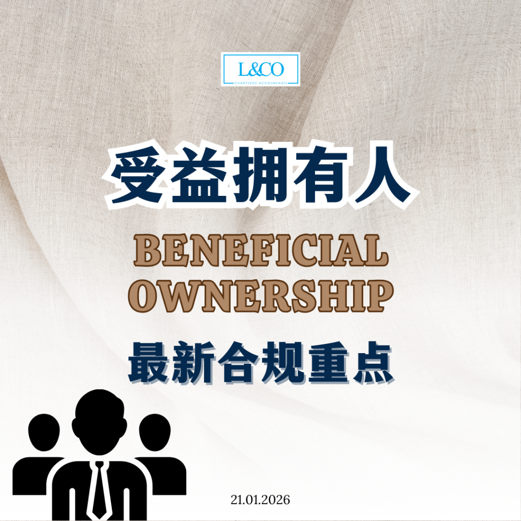 受益拥有人(Beneficial Owner, BO)并不只是名义股东,而是最终直接或间接拥有、控制公司的人。准确识别 BO,已成为企业合规的关键一环。 什么是受益拥有人(BO) 受益拥有人,是指最终直接或间接拥有或实际控制公司的人(自然人),并不只限于名义上的注册股东。一般包括: 持有公司至少 20% 股份或投票权的人 对公司决策、管理层具有实质影响力或控制权的人 新的法定合规要求 **(依据《公司法2016》及 SSM 指南) 所有在马来西亚注册的公司,必须: 识别并核实公司的受益拥有人 在公司注册地址保存一份受益拥有人登记册 于 14 天内 记录任何受益拥有权的变更 按 SSM 要求或在被要求时,提交相关受益拥有人资料 **适用范围:所有公司,不分规模或行业。 [...]