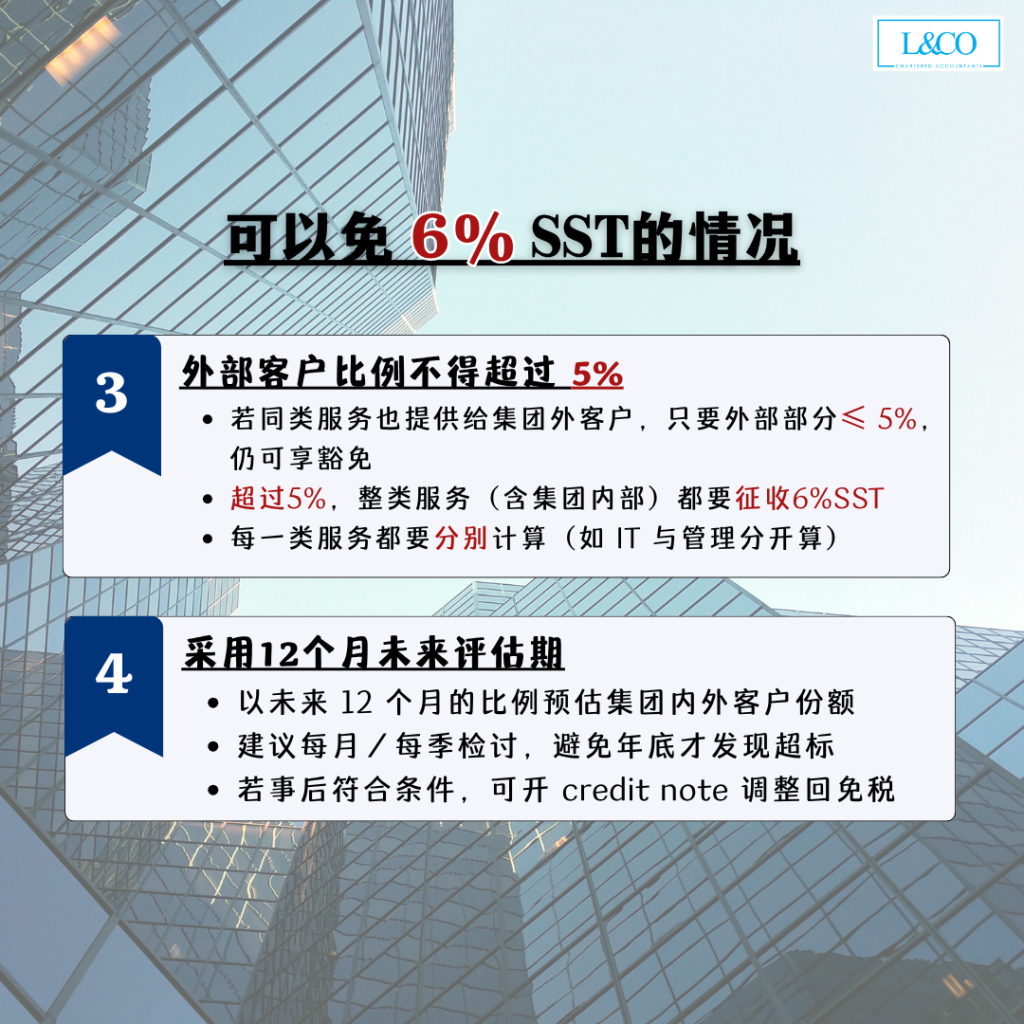 - 超过 5%,整类服务(含集团内部)都要征收 6% SST