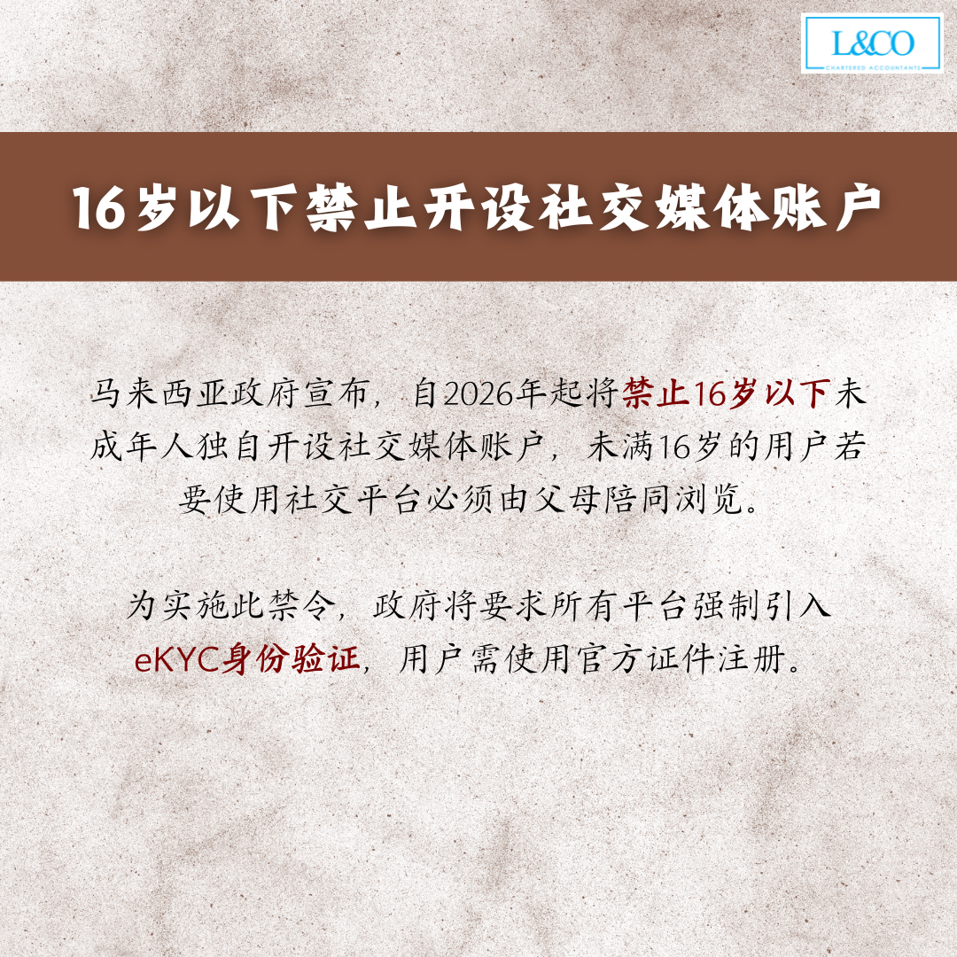 • 马来西亚政府宣布,自2026年起将禁止16岁以下未成年人独自开设社交媒体账户,未满 16 岁的用户若要使用社交平台必须由父母陪同浏览