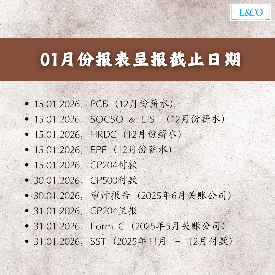 • 15.01.2026:SOCSO & EIS (12月份薪水)