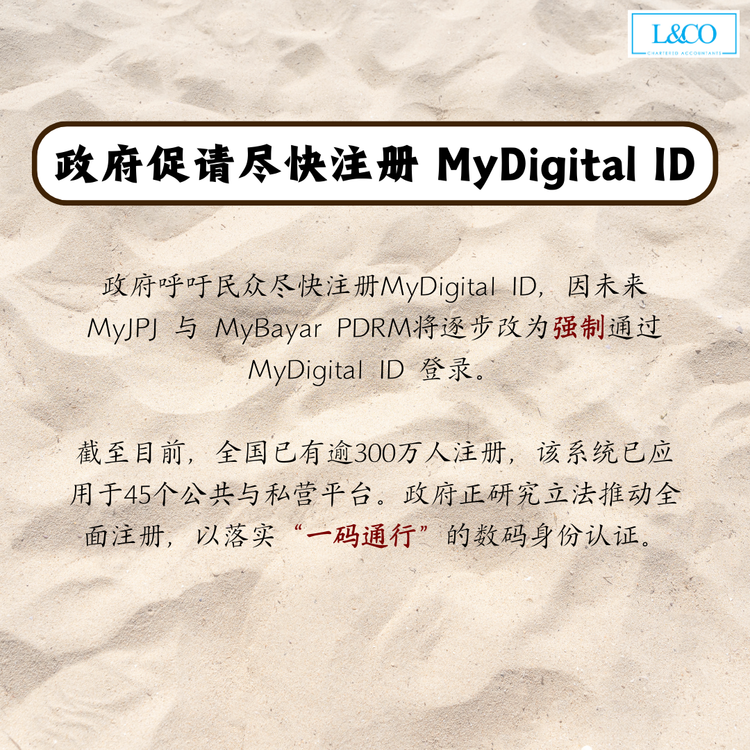 • 政府呼吁民众尽快注册 MyDigital ID,因未来 MyJPJ 与 MyBayar PDRM将逐步改为强制通过 MyDigital ID 登录