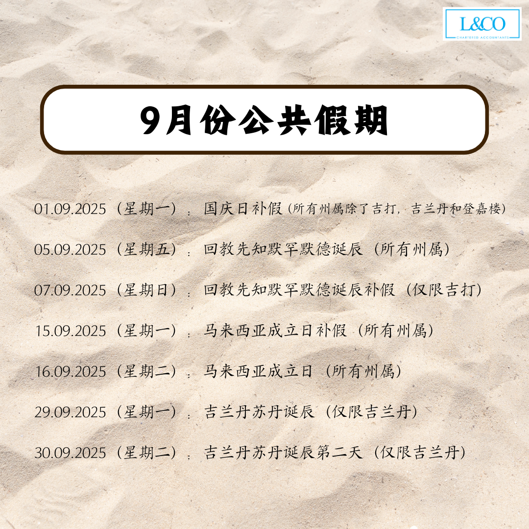 • 29.09.2025(星期一):吉兰丹苏丹诞辰(仅限吉兰丹)