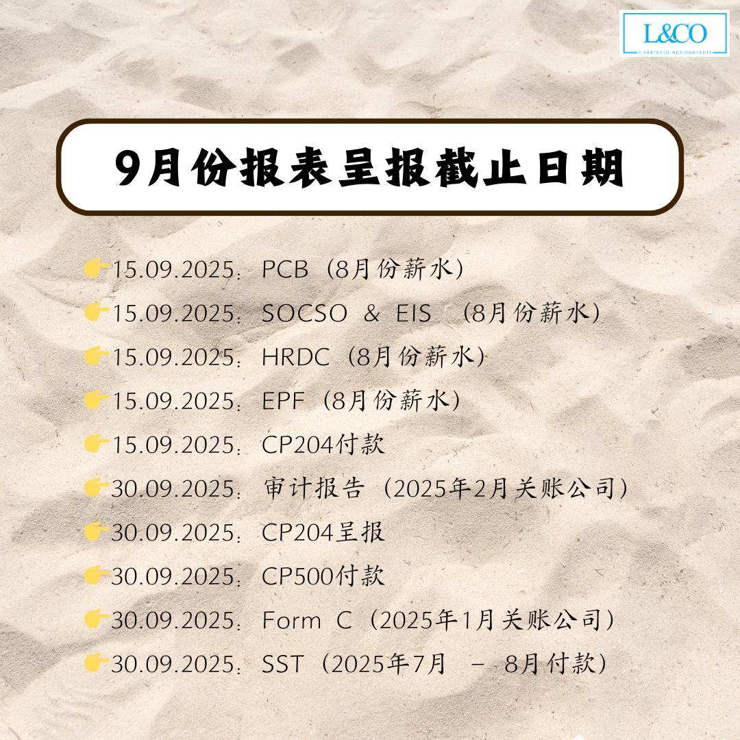 • 15.09.2025:SOCSO & EIS (8月份薪水)