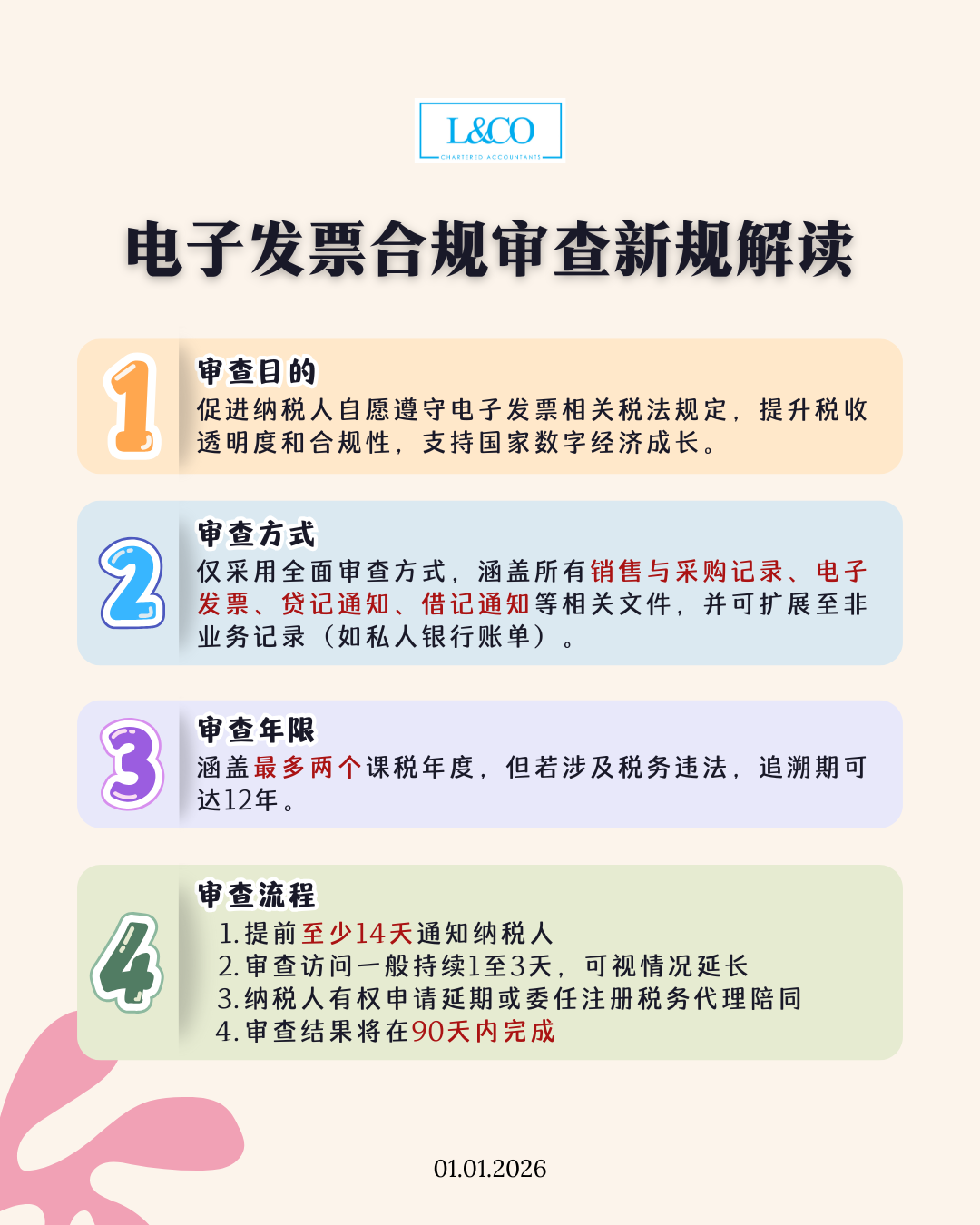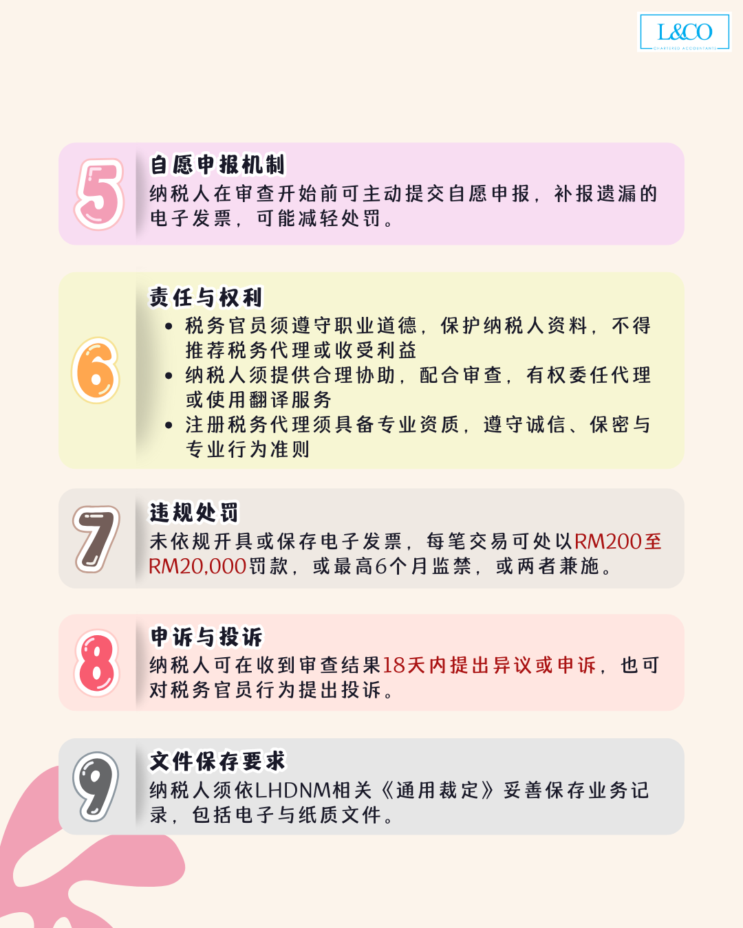 - 纳税人须提供合理协助,配合审查,有权委任代理或使用翻译服务