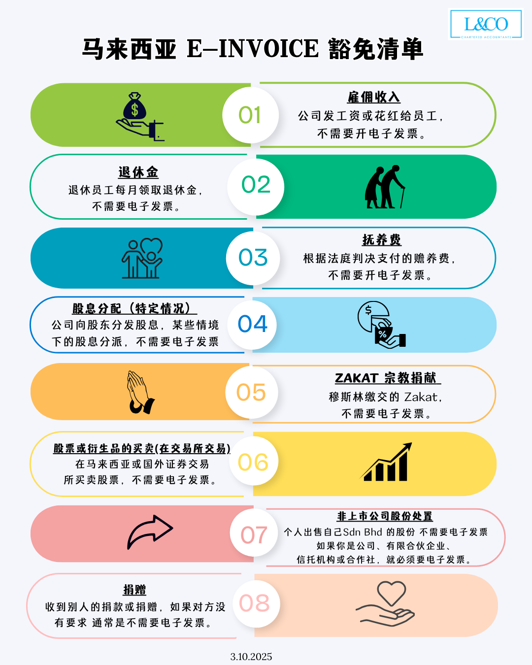 内陆税收局(IRBM)在最新的 e-Invoice 指南中明确列出部分收入与支出可豁免开具电子发票,