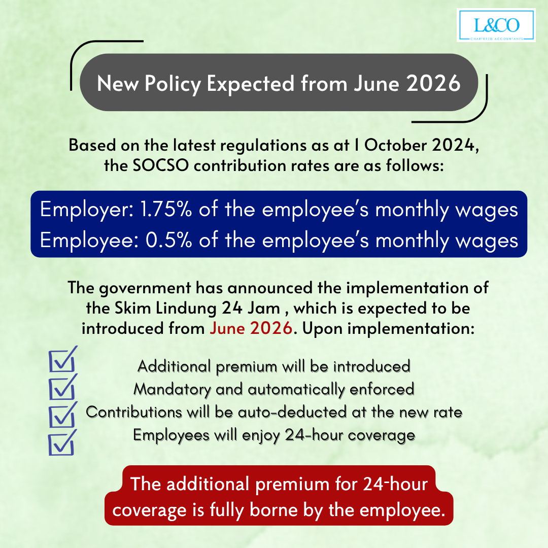 The SOCSO 2026 policy introduces Skim Lindung 24 Jam, expanding Social Security Organisation coverage to 24-hour protection, including daily life accidents. It provides ongoing support such as monthly cash benefits, medical aid, and rehabilitation—focusing on long-term income protection rather than one-time payouts.