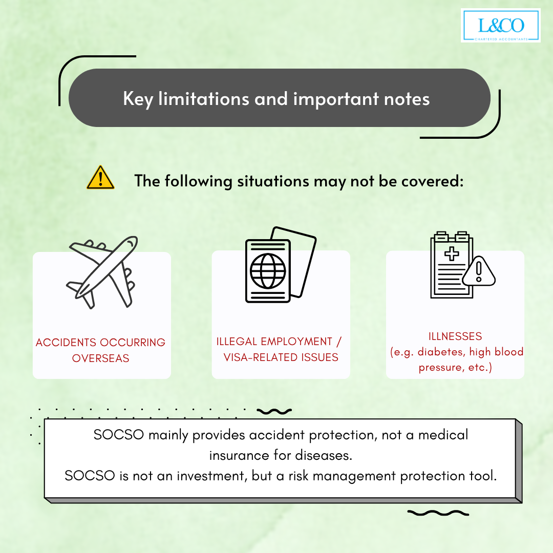 Despite its wide coverage, SOCSO may not cover the following situations: