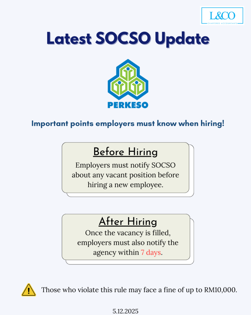 Under the Employment Insurance System (Amendment) Bill 2025, employers are required to comply with new reporting obligations: 1. Before Hiring: Employers must notify SOCSO in [...]