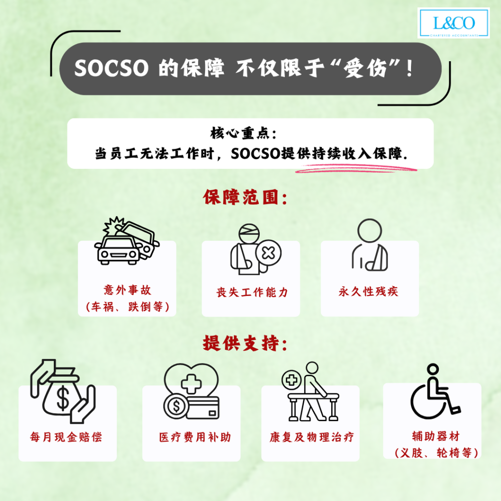 SOCSO的核心功能,在于当员工失去工作能力时提供持续收入支持。