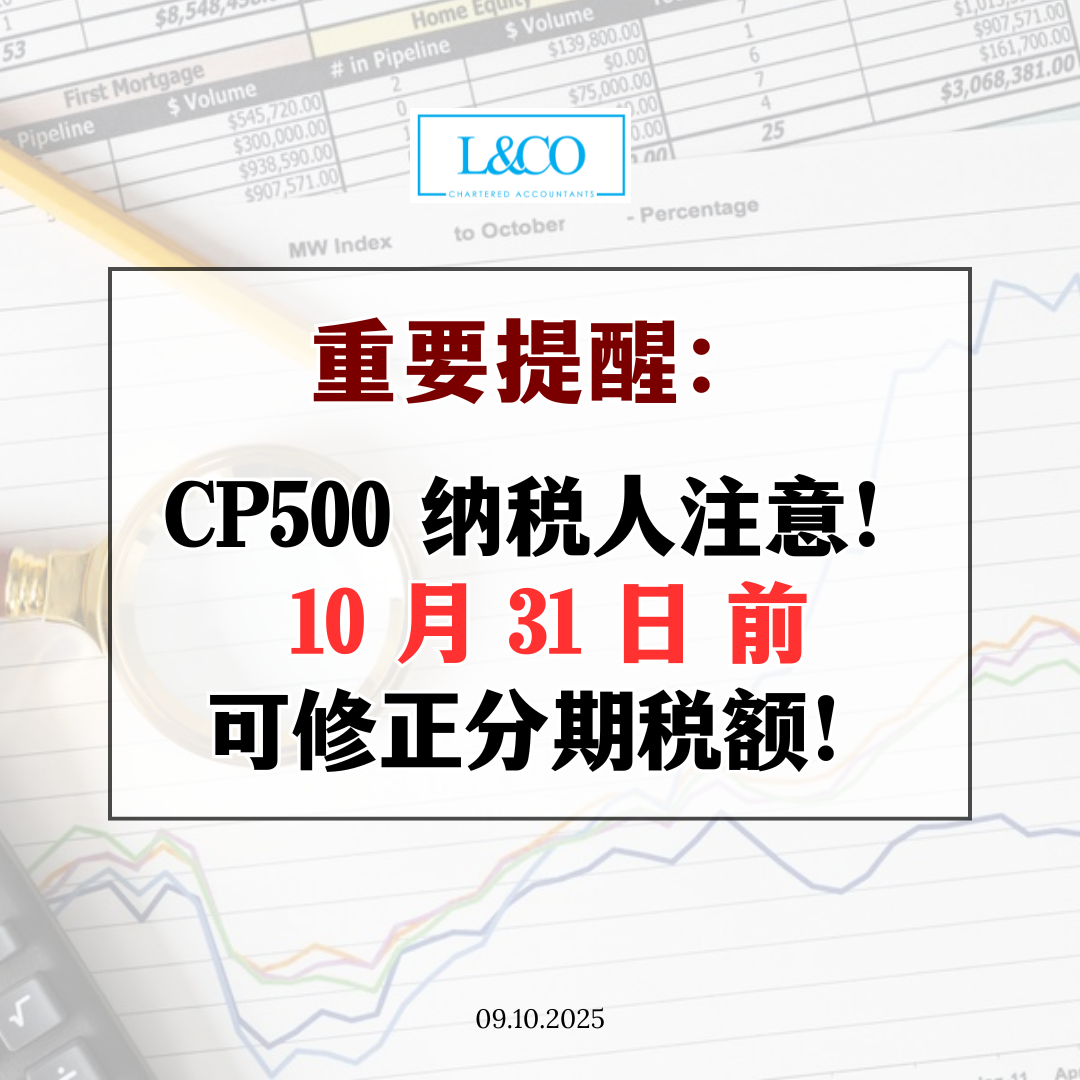 若你的收入预估有变动,可在 2025年10月31日前 提交 CP502 表格 调整分期税额。