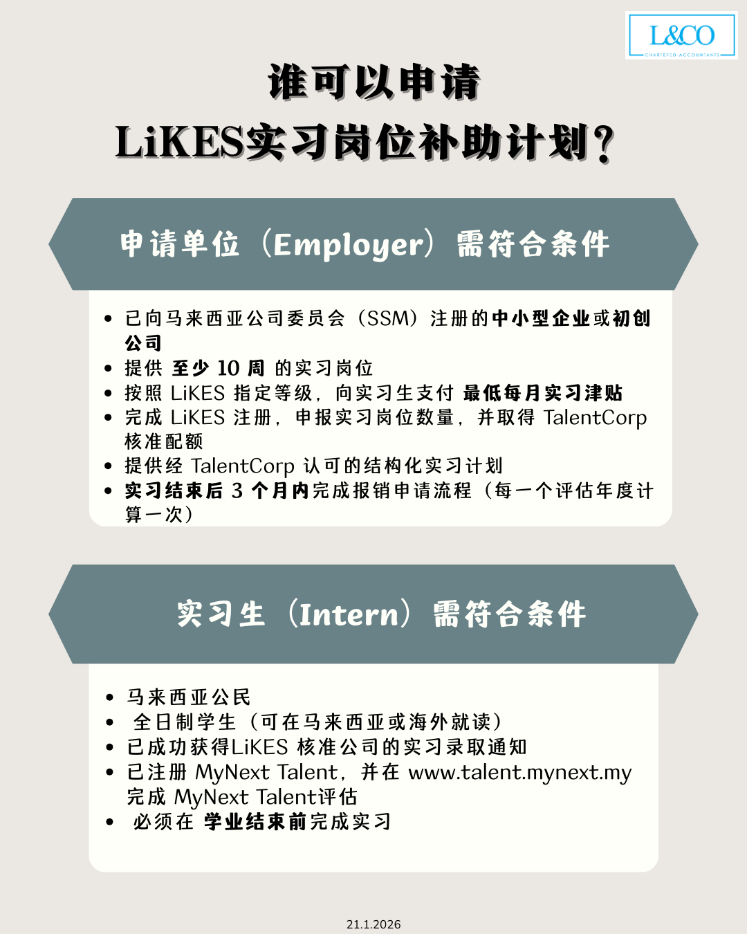- 提供经 TalentCorp 认可的 结构化实习计划