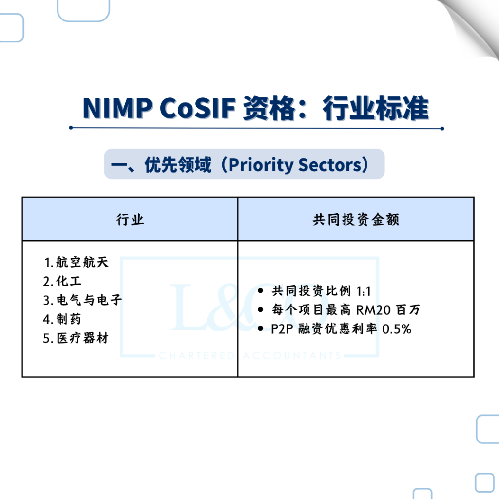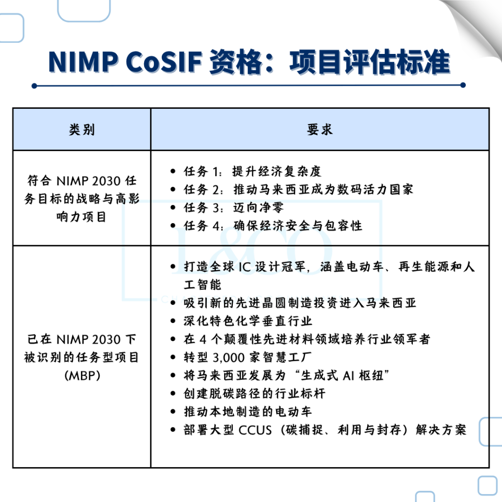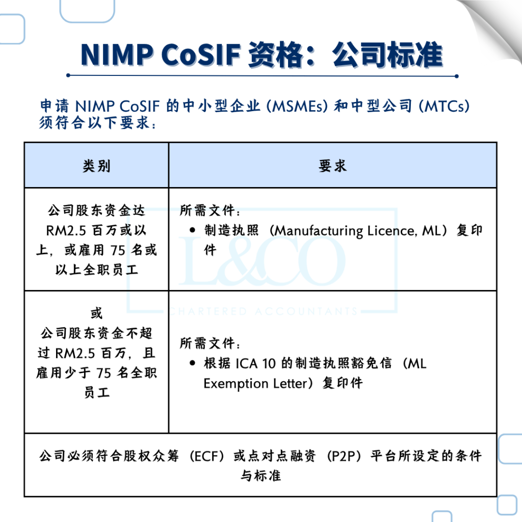 只要你符合 NIMP CoSIF 的行业 + 公司 + 项目标准,就能申请