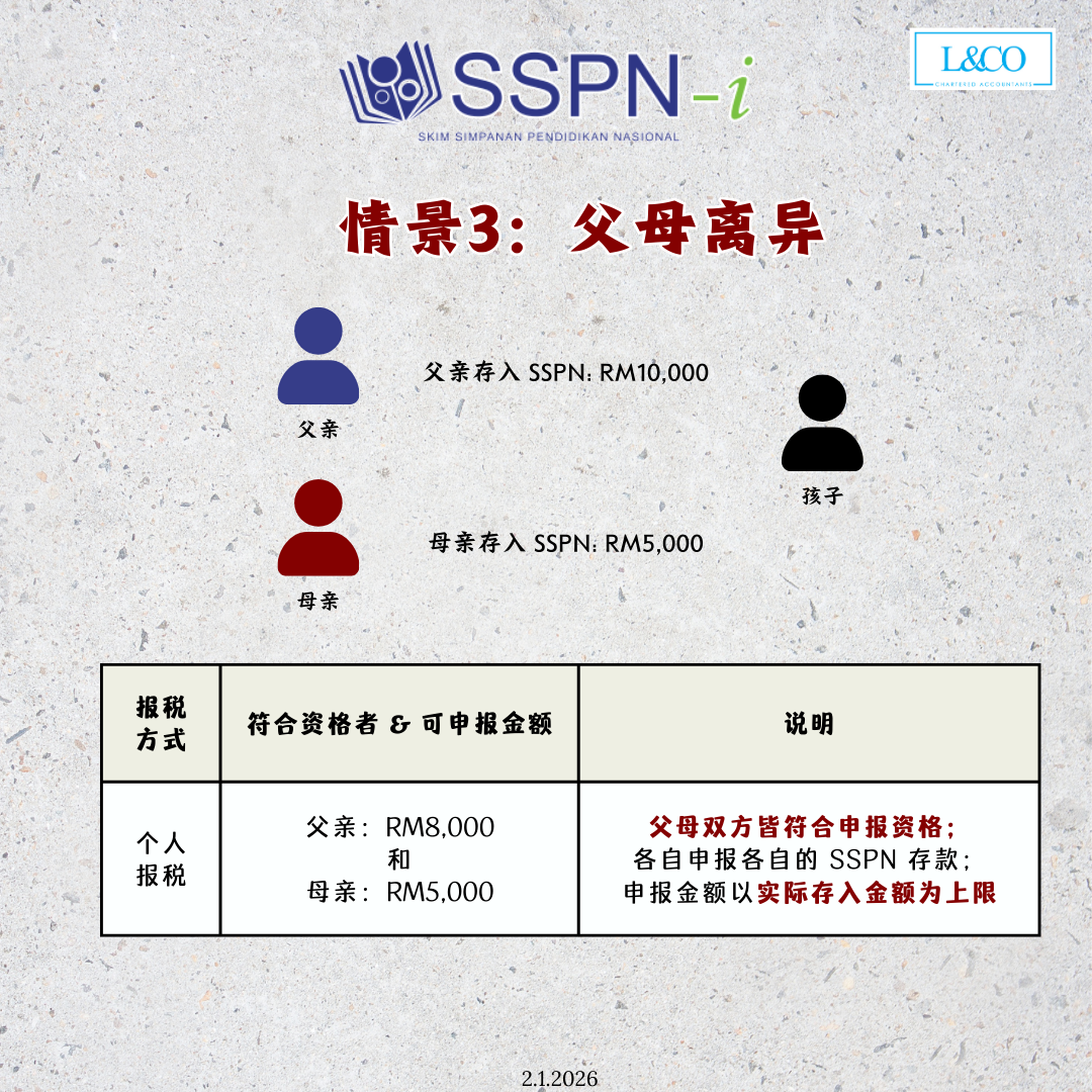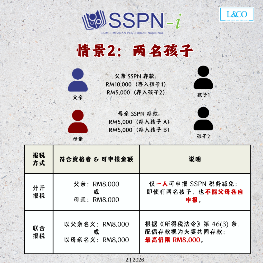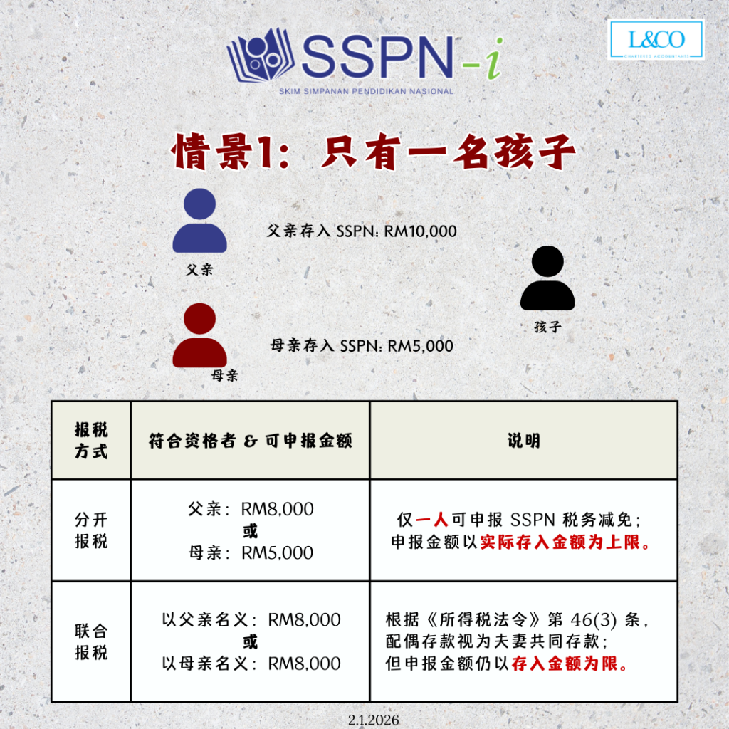• 每位父母可各自申报 最高 RM8,000 SSPN 税务减免