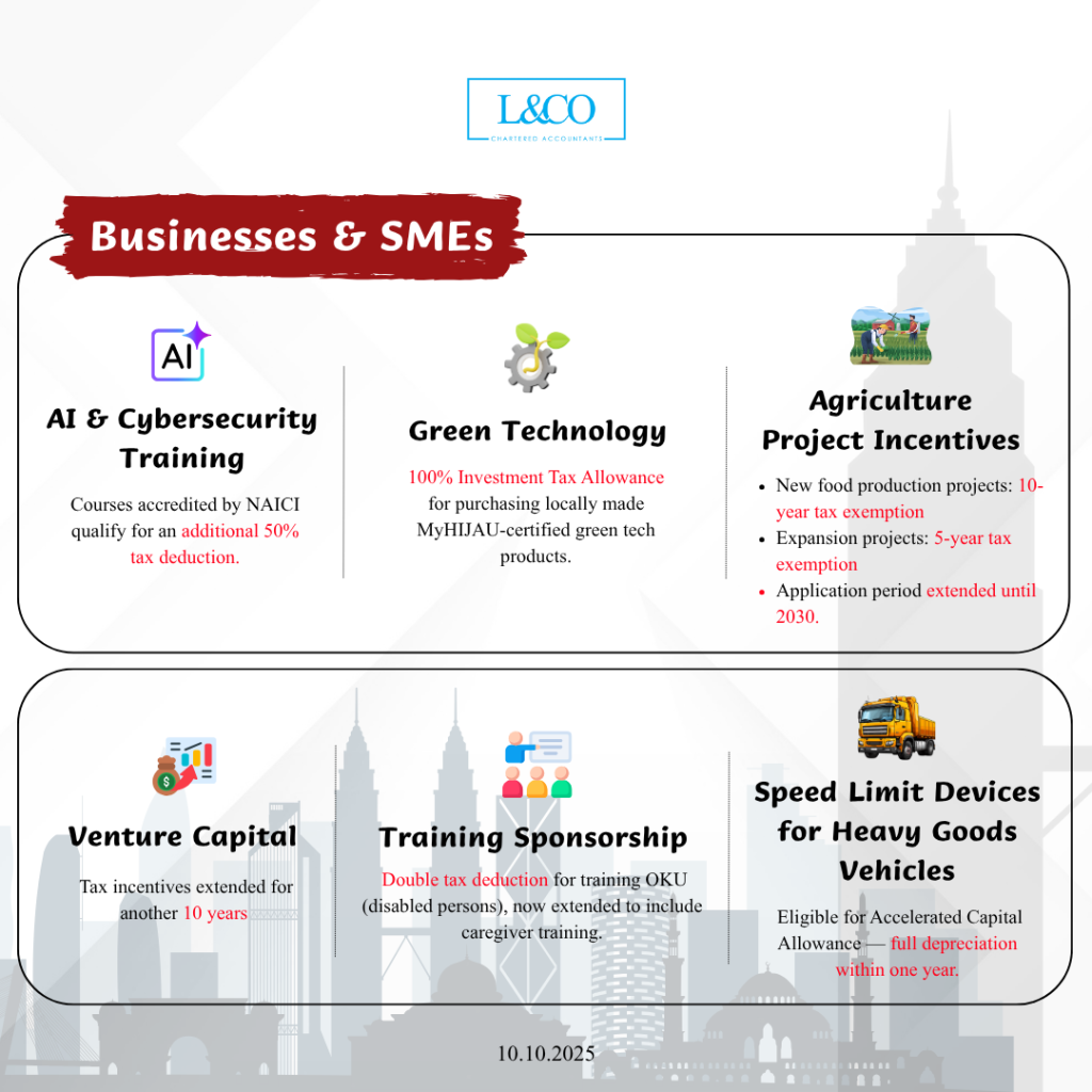 Double deduction for training expenses of persons with disabilities (OKU) expanded to include certified caregiver training programmes.