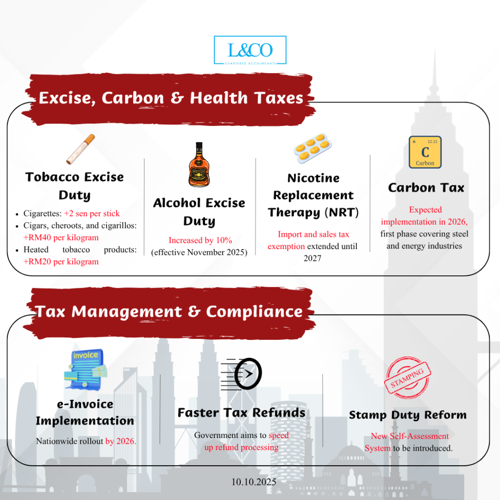 - Alcohol – Excise duty on liquor increased by 10%, effective 1 Nov 2025.