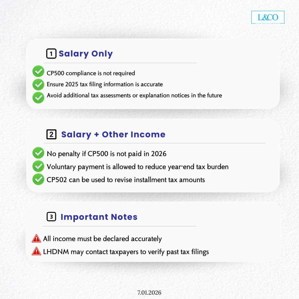 - No penalty will be imposed for non-payment of CP500 instalments in YA 2026;