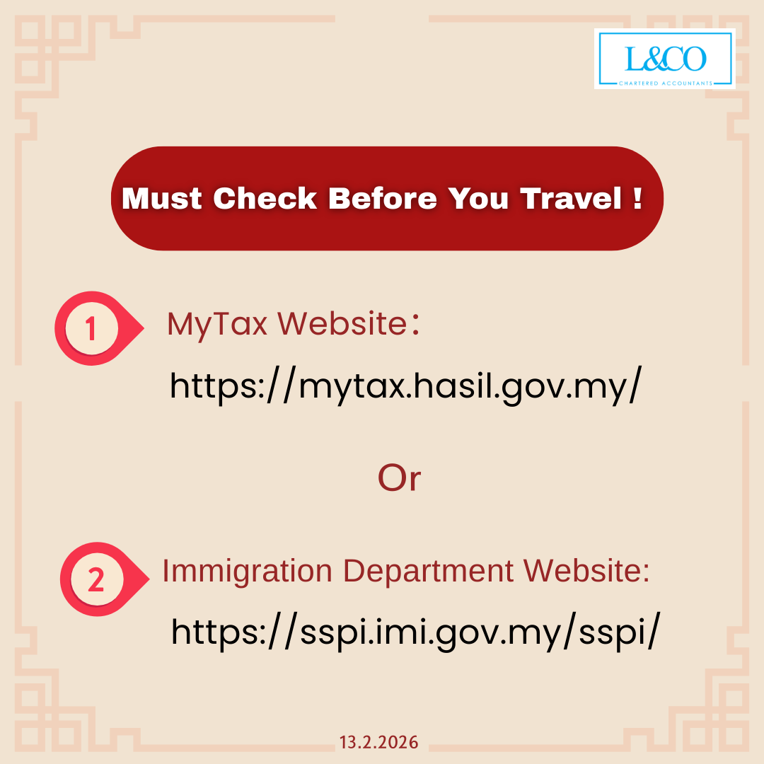 Before your trip, it is strongly advisable to check your tax and travel restriction status to avoid any disruption at the airport.