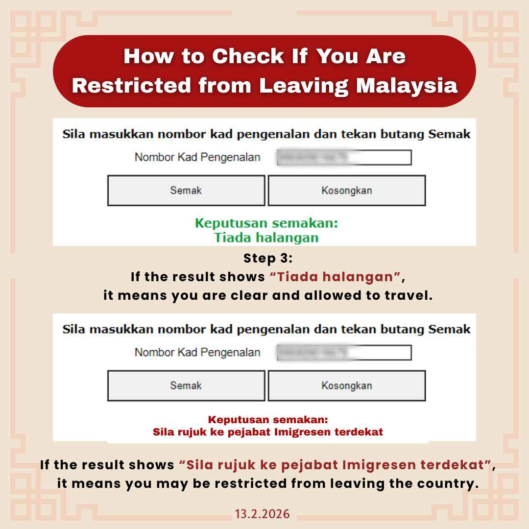 If the result shows: “Sila rujuk ke pejabat Imigresen terdekat”