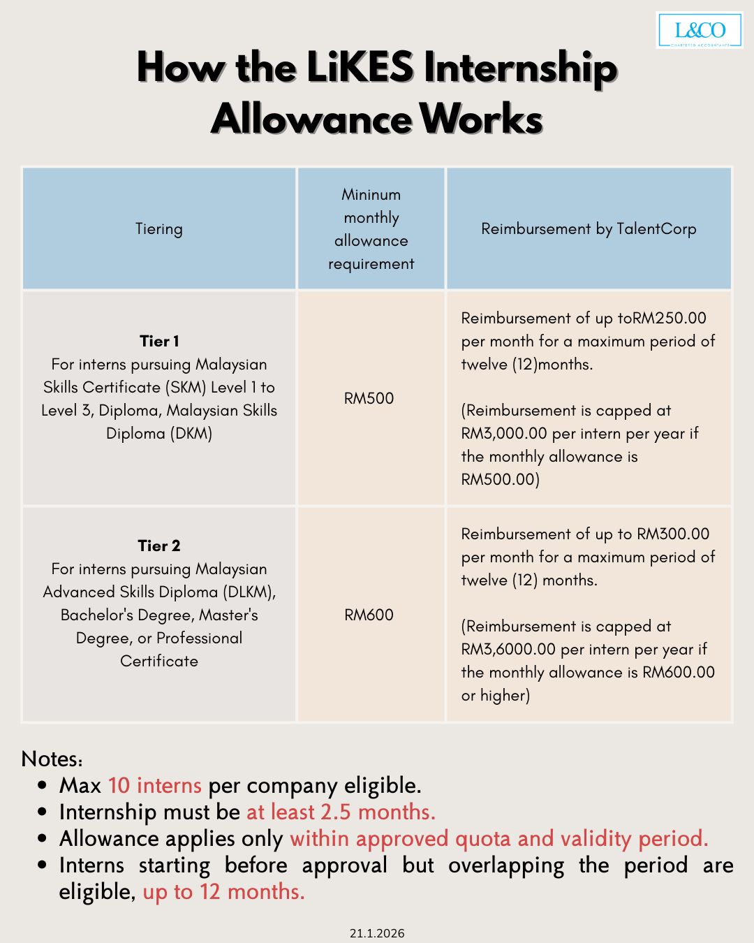 - The grant applies only to interns hired within the approved quota and endorsement period by TalentCorp