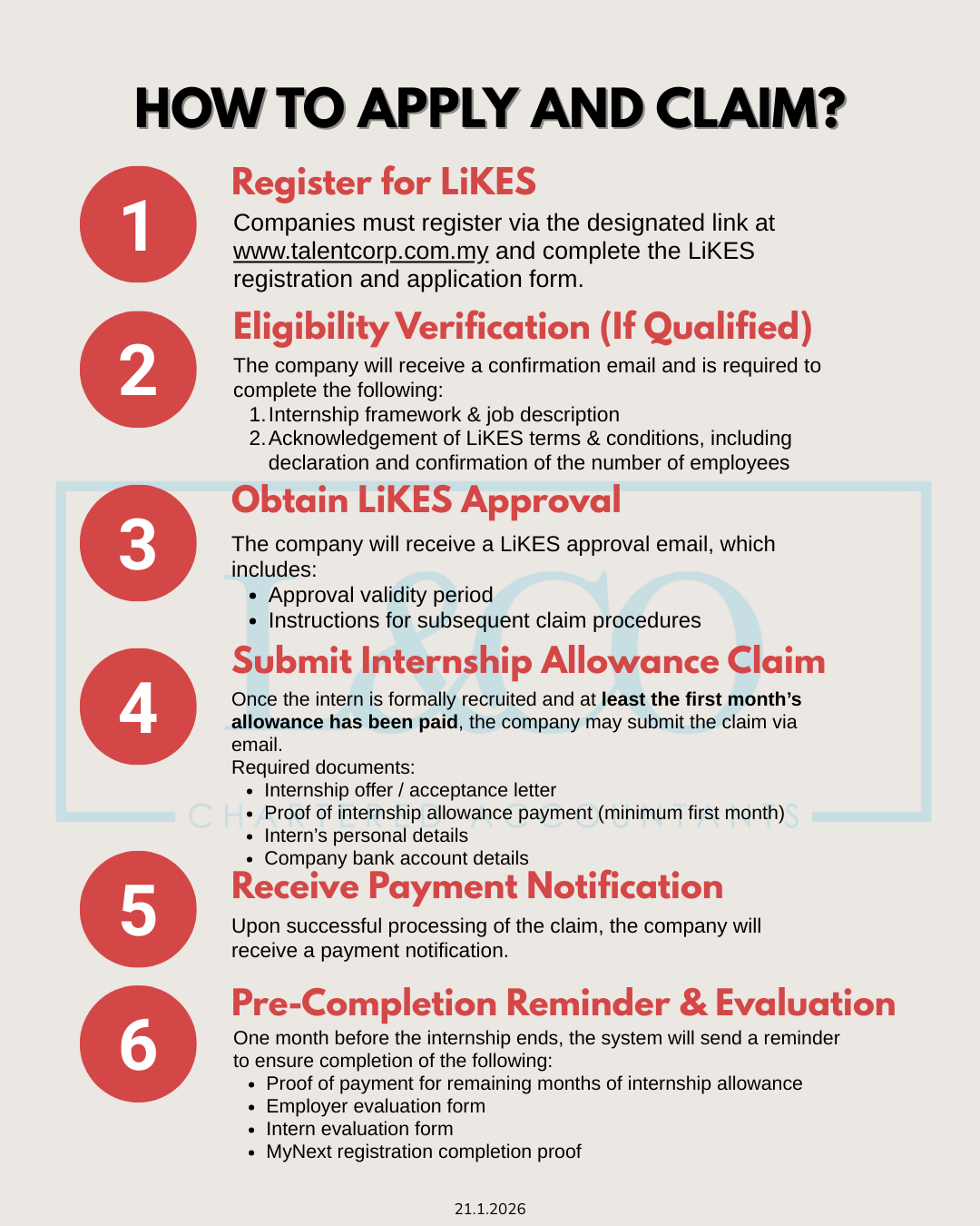 - Employer completes LiKES registration and submits the application
