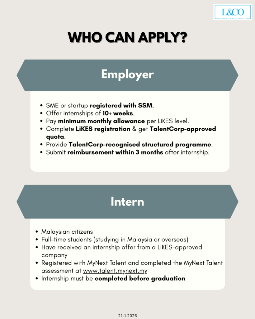 This incentive is introduced by TalentCorp Malaysia under the Internship Placement Matching Grant for SMEs and Start-Ups (LiKES),