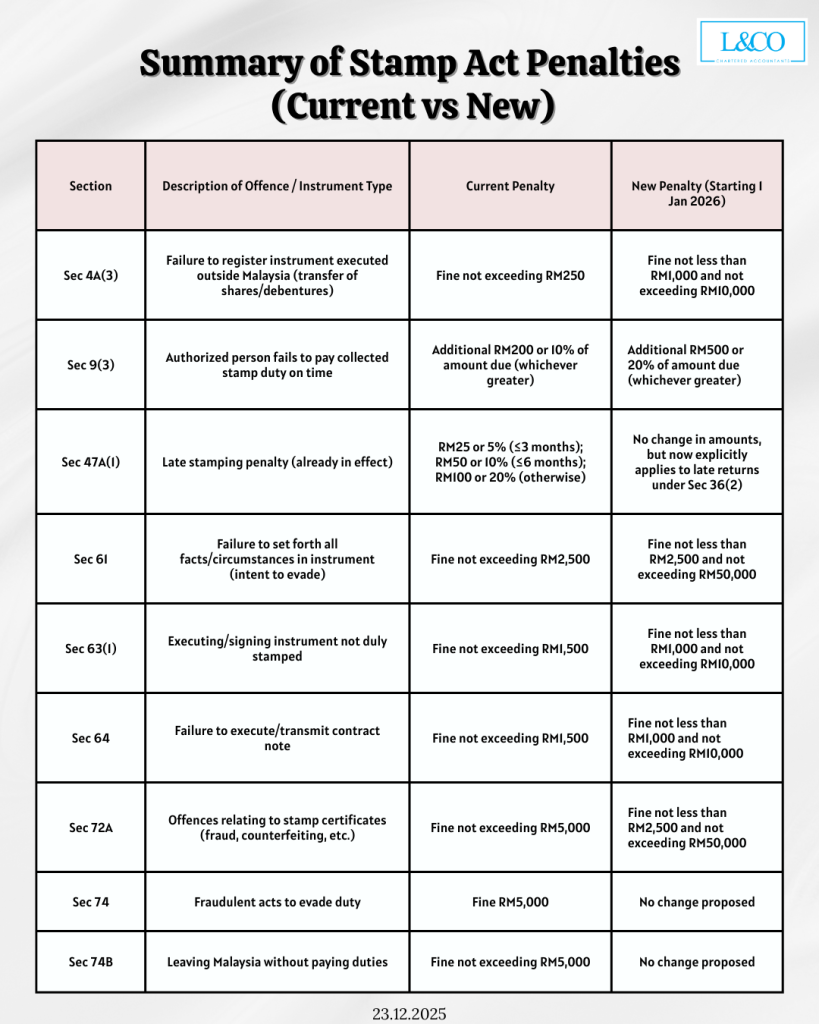 The Tax Bill 2025 introduces revisions to penalties for various stamp duty offences, which will take effect from 1 January 2026.