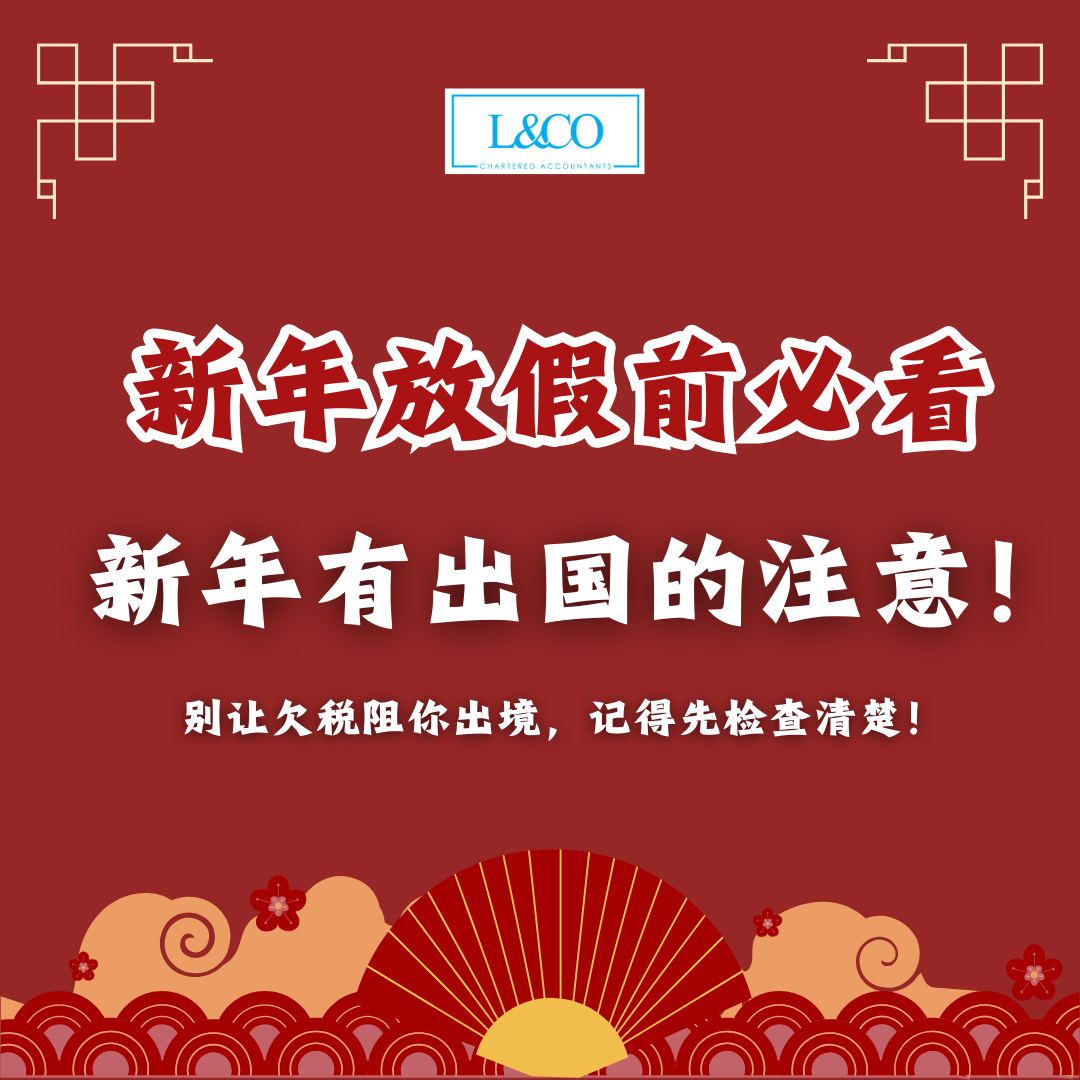 别让欠税阻挡您出境。 出发前,请务必提前检查自身税务与出境状态,避免在机场被拦下,影响行程安排。 什么情况下可能被限制出境? 若出现以下情况,可能会被列入限制出境名单: 1. 已被评税但未缴清税款 已收到税务评估通知,但未在规定期限内缴清税款。 2. 拖欠 CP500 未按期缴纳 CP500 分期预缴税款。 3. 多年未报税,产生欠税 长期未申报税务,税务局进行估算评税后形成欠税。 4. 收到税单却未处理 已接获税务通知或罚款通知,但未及时处理。 5. 公司欠税影响董事或主要股东 若公司存在欠税情况,董事或持股 ≥20% 的主要股东,也可能受到出境限制影响。 出国前必查! [...]